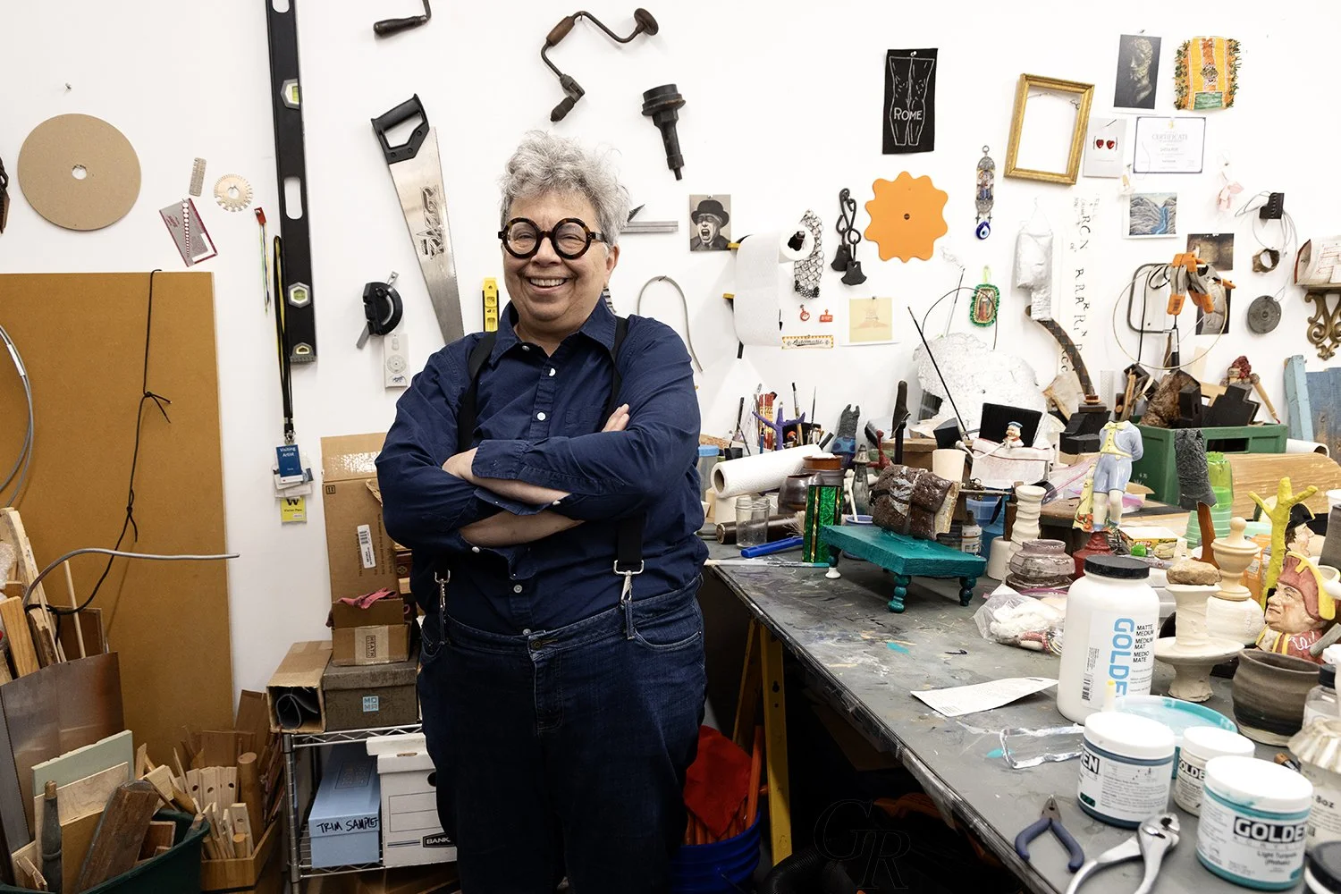 For more than 30 years she has accumulated a family resemblance (see Wittgenstein, Philosophical Investigations ) of works in sculpture—installation—drawing and other singular and hybrid forms. Some are drawings that are sculpture—or sculpture that is furniture, fiber works that appear as paintings, and table top objects that look like models for monuments, and stand as votives for a secular religion. The cultural sources and the meanings twisted together are from canonical arts of the 20th century, home crafts, lesbian, queer and feminist aesthetics, 2nd Vatican Council American design, an array of Roman Catholic sources as well as their ancient precedents.